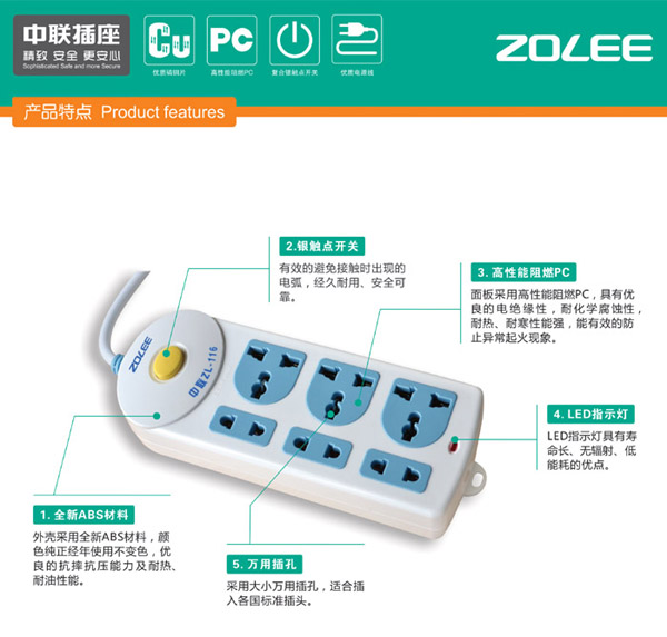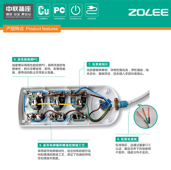 ·內(nèi)部連接線采用超標(biāo)準(zhǔn)的1平方全新銅線,保證了插座的安全性。
