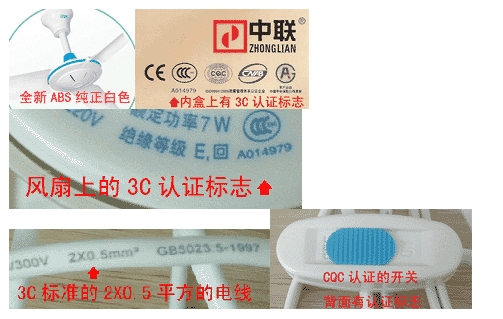 The Zhonglian breeze ceiling fan had all passed the national compulsory (CCC) certification in 2004.